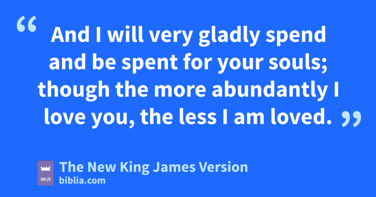 14 tNow for the third time I am ready to come to you. And I will not be burdensome to you; for uI do not seek yours, but you. vFor the children ought not to lay up for the parents, but the parents for the children. 15 And I will very gladly spend and be spent wfor your souls; though xthe more abundantly I love you, the less I am loved.
