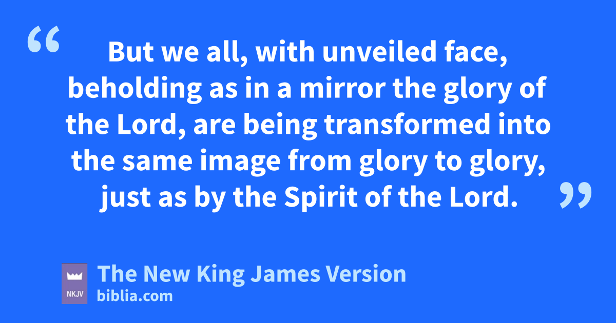 12 Therefore, since we have such hope, swe use great boldness of speech—13 unlike Moses, twho put a veil over his face so that the children of Israel could not look steadily at uthe end of what was passing away. 14 But vtheir minds were blinded. For until this day the same veil remains unlifted in the reading of the Old Testament, because the veil is taken away in Christ. 15 But even to this day, when Moses is read, a veil lies on their heart. 16 Nevertheless wwhen one turns to the Lord, xthe veil is taken away. 17 Now ythe Lord is the Spirit; and where the Spirit of the Lord is, there is zliberty. 18 But we all, with unveiled face, beholding aas in a mirror bthe glory of the Lord, care being transformed into the same image from glory to glory, just as 2by the Spirit of the Lord.