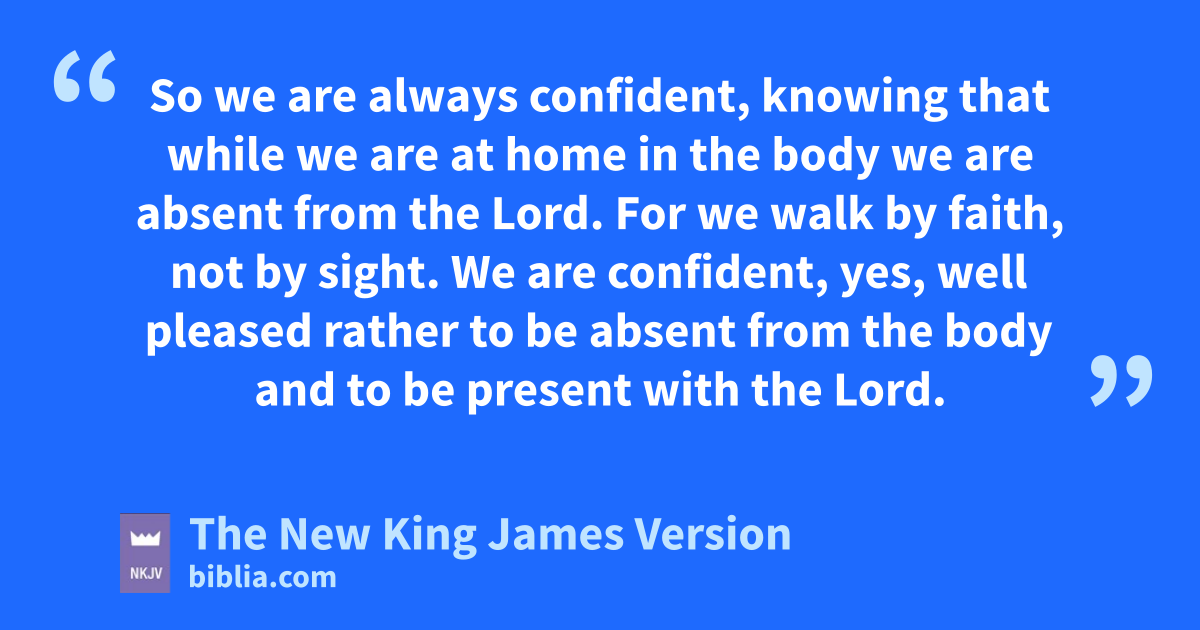 6 So we are always confident, knowing that while we are at home in the body we are absent from the Lord. 7 For gwe walk by faith, not by sight. 8 We are confident, yes, hwell pleased rather to be absent from the body and to be present with the Lord.
