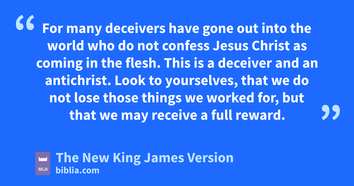 7 For gmany deceivers have gone out into the world hwho do not confess Jesus Christ as coming in the flesh. iThis is a deceiver and an antichrist. 8 jLook to yourselves, kthat 3we do not lose those things we worked for, but that 3we may receive a full reward.