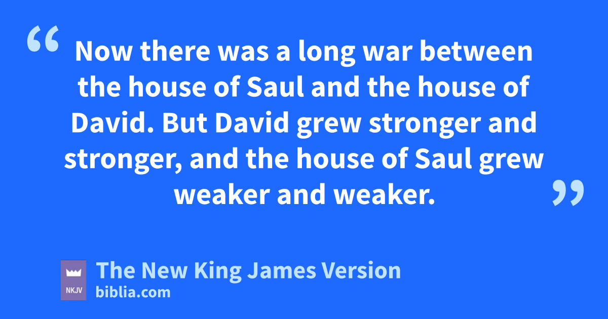 3 Now there was a long awar between the house of Saul and the house of David. But David grew stronger and stronger, and the house of Saul grew weaker and weaker.