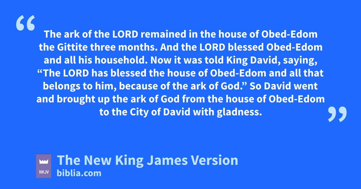 9 hDavid was afraid of the Lord that day; and he said, “How can the ark of the Lord come to me?” 10 So David would not move the ark of the Lord with him into the iCity of David; but David took it aside into the house of Obed-Edom the jGittite. 11 kThe ark of the Lord remained in the house of Obed-Edom the Gittite three months. And the Lord lblessed Obed-Edom and all his household.