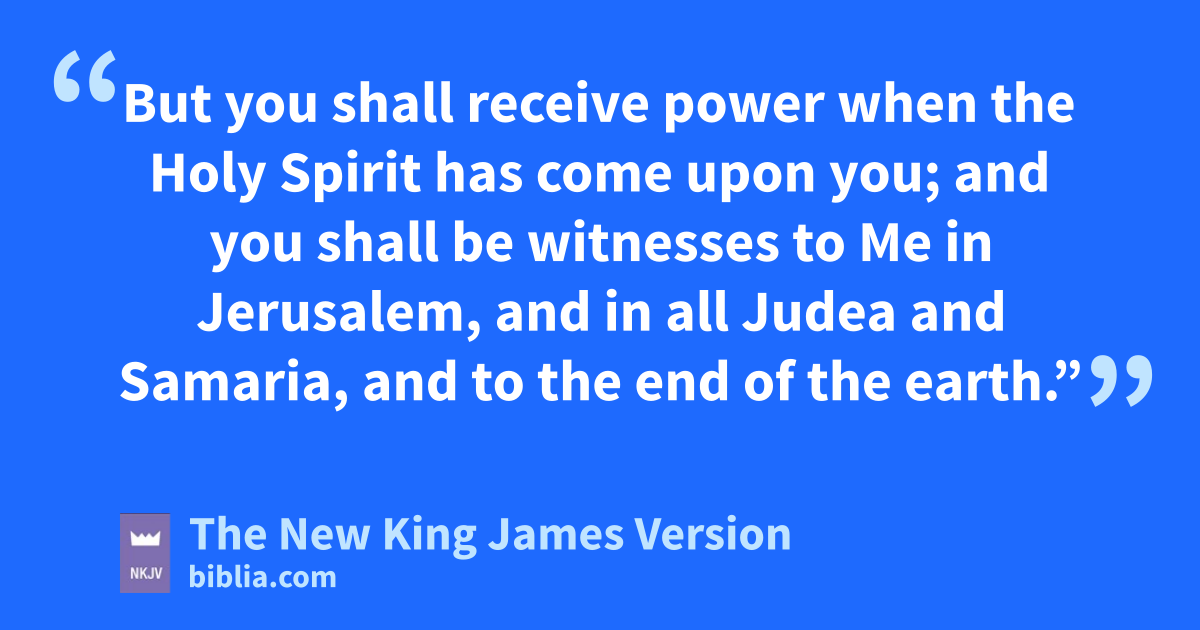 4 eAnd being assembled together with them, He commanded them not to depart from Jerusalem, but to wait for the Promise of the Father, “which,” He said, “you have fheard from Me; 5 gfor John truly baptized with water, hbut you shall be baptized with the Holy Spirit not many days from now.” 6 Therefore, when they had come together, they asked Him, saying, “Lord, will You at this time restore the kingdom to Israel?” 7 And He said to them, i“It is not for you to jknow times or seasons which the Father has put in His own authority. 8 kBut you shall receive power lwhen the Holy Spirit has come upon you; and myou shall be 3witnesses to Me in Jerusalem, and in all Judea and nSamaria, and to the oend of the earth.”