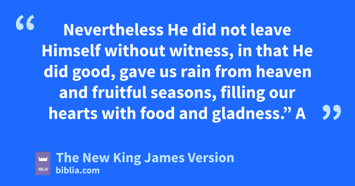 14 But when the apostles Barnabas and Paul heard this, lthey tore their clothes and ran in among the multitude, crying out 15 and saying, “Men, mwhy are you doing these things? nWe also are men with the same nature as you, and preach to you that you should turn from othese useless things pto the living God, qwho made the heaven, the earth, the sea, and all things that are in them, 16 rwho in bygone generations allowed all nations to walk in their own ways. 17 sNevertheless He did not leave Himself without witness, in that He did good, tgave us rain from heaven and fruitful seasons, filling our hearts with ufood and gladness.” 18 And with these sayings they could scarcely restrain the multitudes from sacrificing to them.