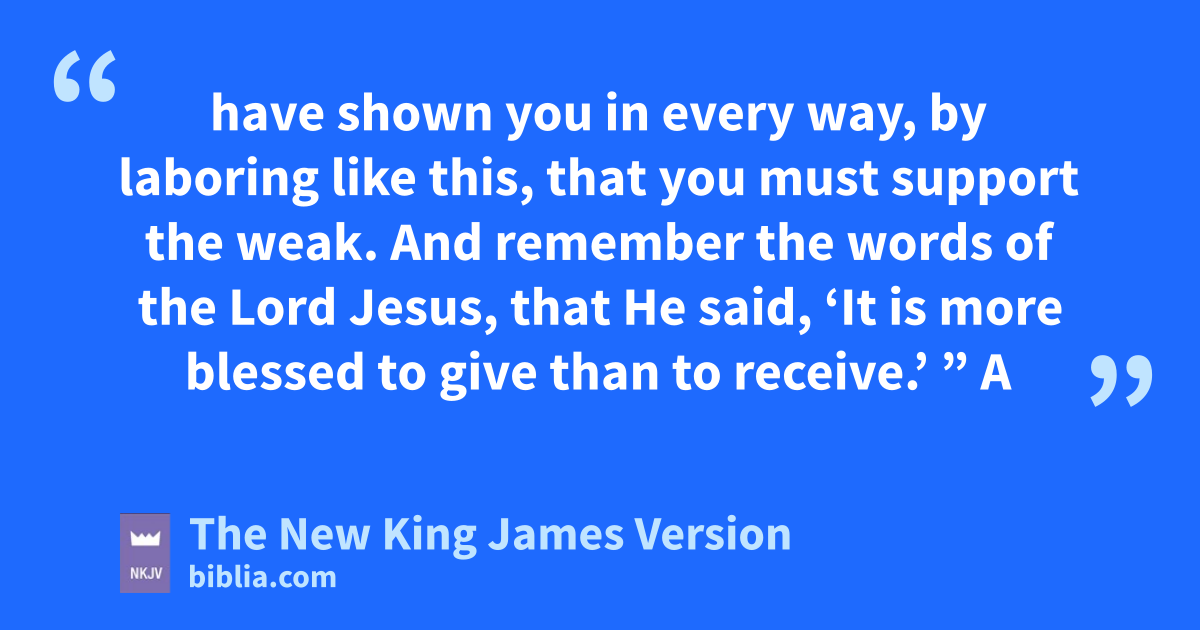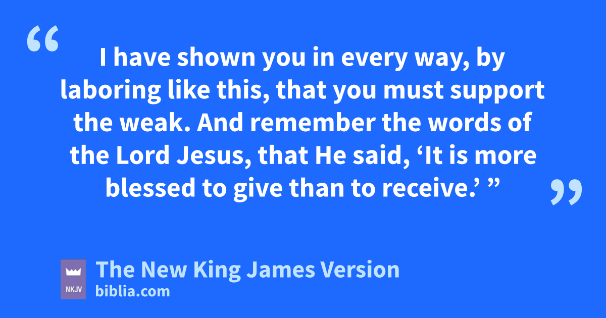 32 “So now, brethren, I commend you to God and nto the word of His grace, which is able oto build you up and give you pan inheritance among all those who are sanctified. 33 I have coveted no one’s silver or gold or apparel. 34 9Yes, you yourselves know qthat these hands have provided for my necessities, and for those who were with me. 35 I have shown you in every way, rby laboring like this, that you must support the weak. And remember the words of the Lord Jesus, that He said, ‘It is more blessed to give than to receive.’ ”