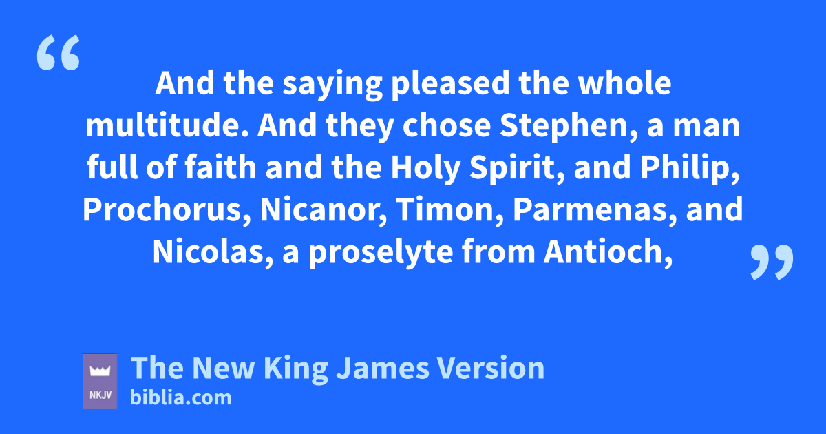 5 And the saying pleased the whole multitude. And they chose Stephen, ha man full of faith and the Holy Spirit, and iPhilip, Prochorus, Nicanor, Timon, Parmenas, and jNicolas, a proselyte from Antioch, 6 whom they set before the apostles; and kwhen they had prayed, lthey laid hands on them.
