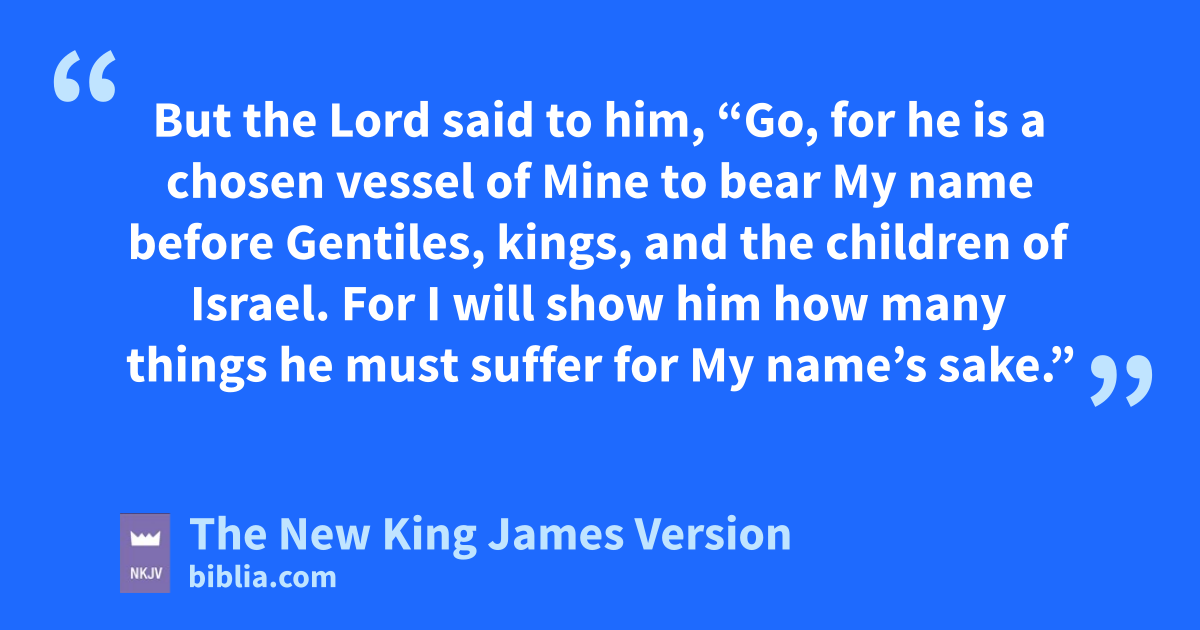 15 But the Lord said to him, “Go, for jhe is a chosen vessel of Mine to bear My name before kGentiles, lkings, and the mchildren 3of Israel. 16 For nI will show him how many things he must suffer for My oname’s sake.”