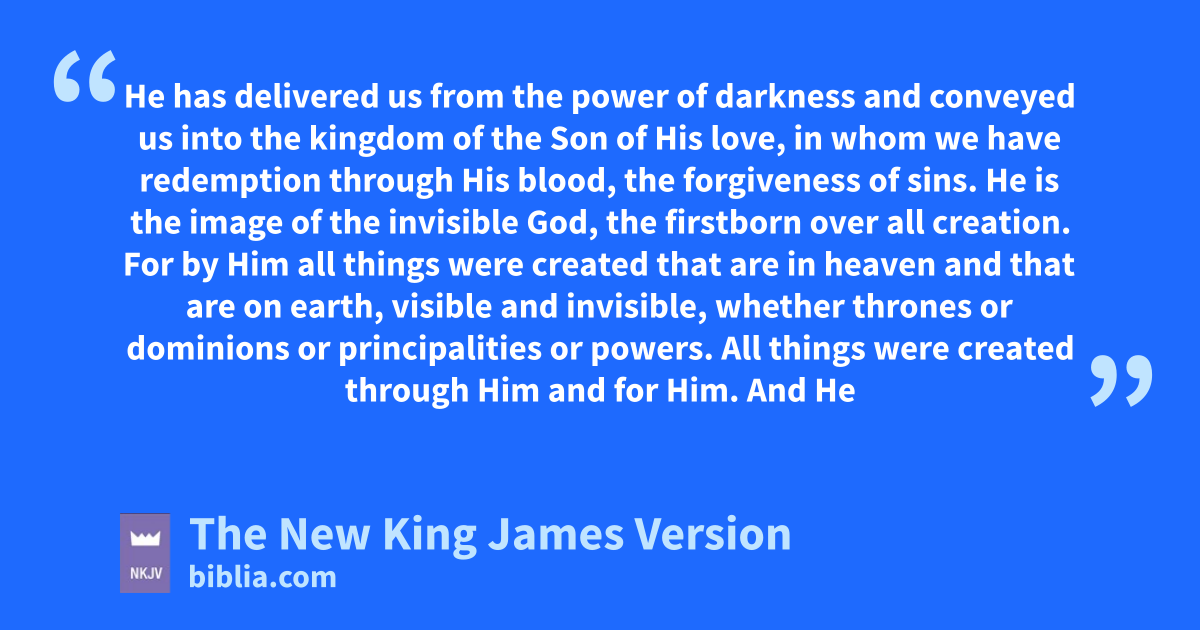 15 He is dthe image of the invisible God, ethe firstborn over all creation. 16 For fby Him all things were created that are in heaven and that are on earth, visible and invisible, whether thrones or gdominions or 5principalities or 6powers. All things were created hthrough Him and for Him. 17 iAnd He is before all things, and in Him jall things consist. 18 And kHe is the head of the body, the church, who is the beginning, lthe firstborn from the dead, that in all things He may have the preeminence.