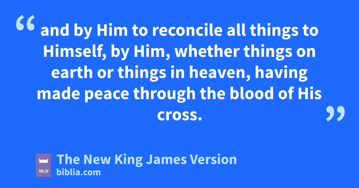 19 For it pleased the Father that min Him all the fullness should dwell, 20 and nby Him to reconcile oall things to Himself, by Him, whether things on earth or things in heaven, phaving made peace through the blood of His cross.