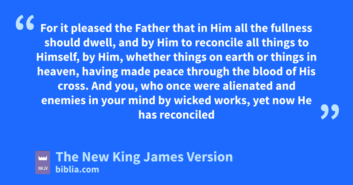 19 For it pleased the Father that min Him all the fullness should dwell, 20 and nby Him to reconcile oall things to Himself, by Him, whether things on earth or things in heaven, phaving made peace through the blood of His cross.