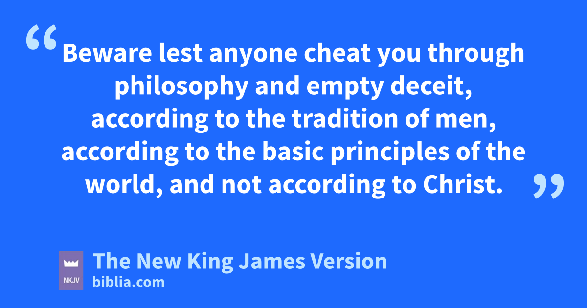 8 Beware lest anyone 5cheat you through philosophy and empty deceit, according to ithe tradition of men, according to the jbasic principles of the world, and not according to Christ. 9 For kin Him dwells all the fullness of the Godhead 6bodily; 10 and you are complete in Him, who is the lhead of all 7principality and power.