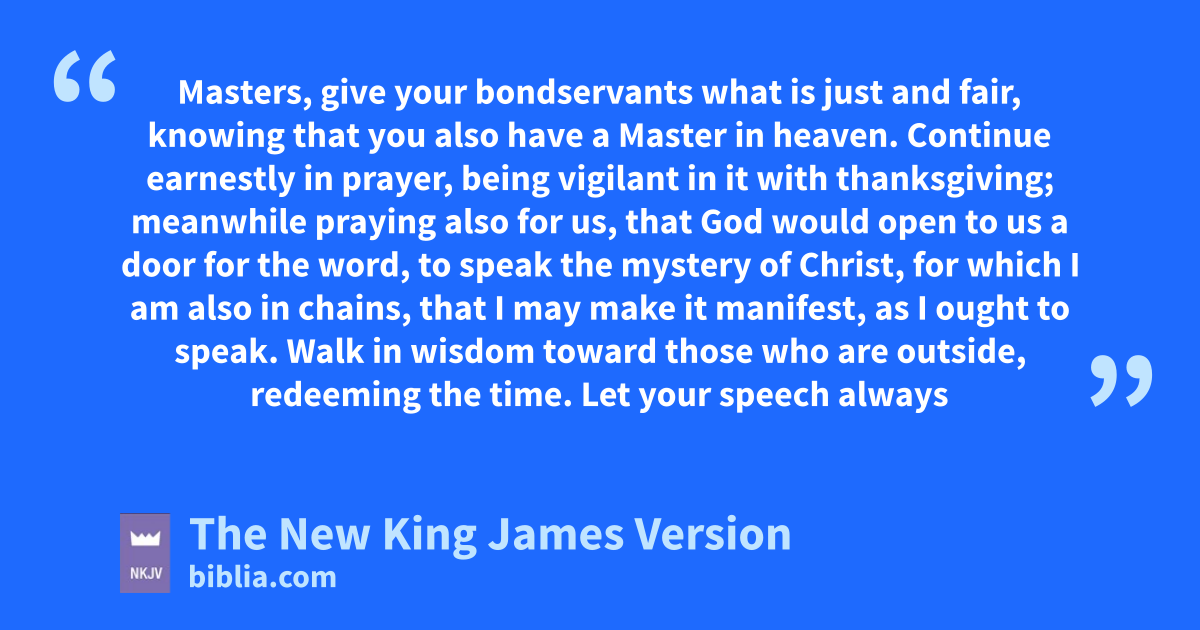 4 Masters, agive your bondservants what is just and fair, knowing that you also have a Master in heaven.
