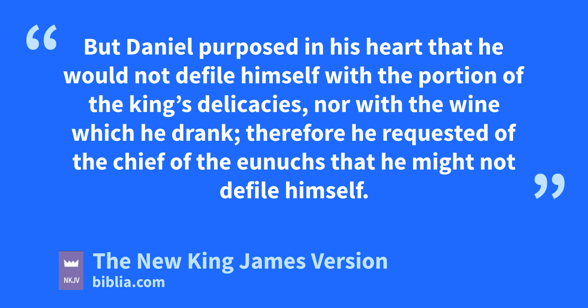 8 But Daniel purposed in his heart that he would not defile himself kwith the portion of the king’s delicacies, nor with the wine which he drank; therefore he requested of the chief of the eunuchs that he might not defile himself. 9 Now lGod had brought Daniel into the favor and 3goodwill of the chief of the eunuchs. 10 And the chief of the eunuchs said to Daniel, “I fear my lord the king, who has appointed your food and drink. For why should he see your faces looking worse than the young men who are your age? Then you would endanger my head before the king.”