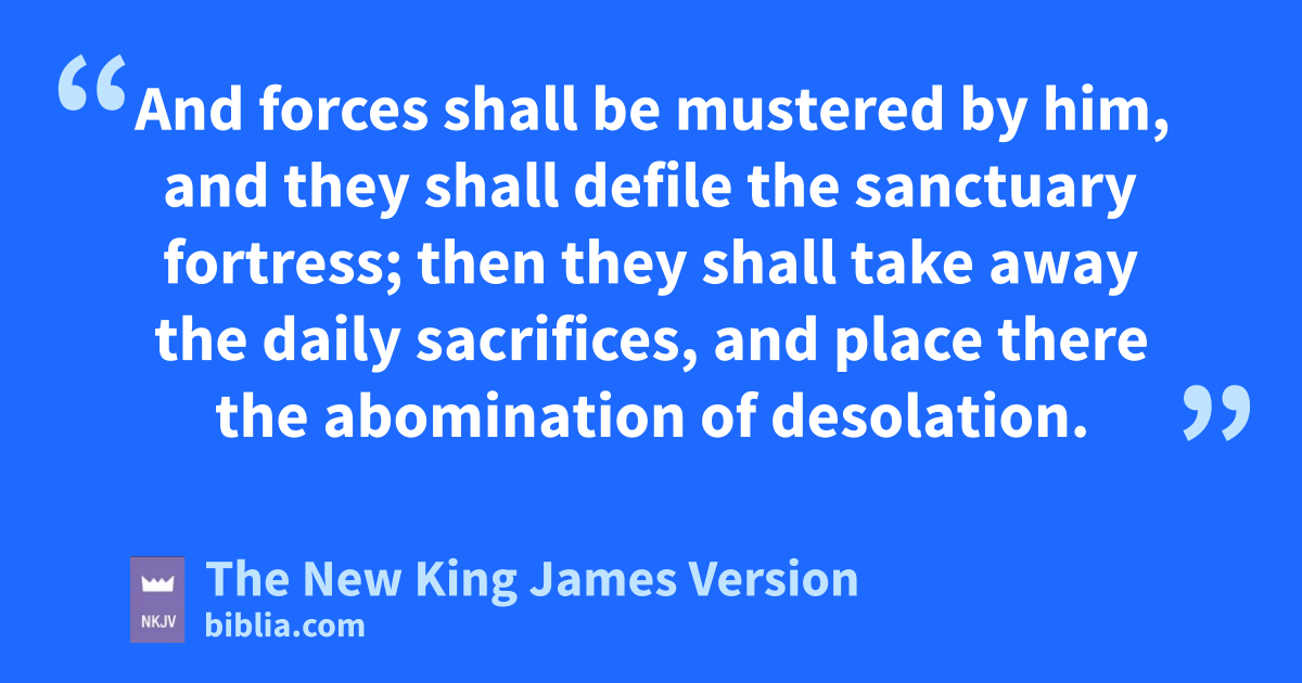 “So he shall return and show regard for those who forsake the holy covenant. 31 And 4forces shall be mustered by him, yand they shall defile the sanctuary fortress; then they shall take away the daily sacrifices, and place there the abomination of desolation. 32 Those who do wickedly against the covenant he shall 5corrupt with flattery; but the people who know their God shall be strong, and carry out great exploits. 33 And those of the people who understand shall instruct many; yet for many days they shall fall by sword and flame, by captivity and plundering. 34 Now when they fall, they shall be aided with a little help; but many shall join with them by 6intrigue. 35 And some of those of understanding shall fall, zto refine them, purify them, and make them white, until the time of the end; because it is still for the appointed time.