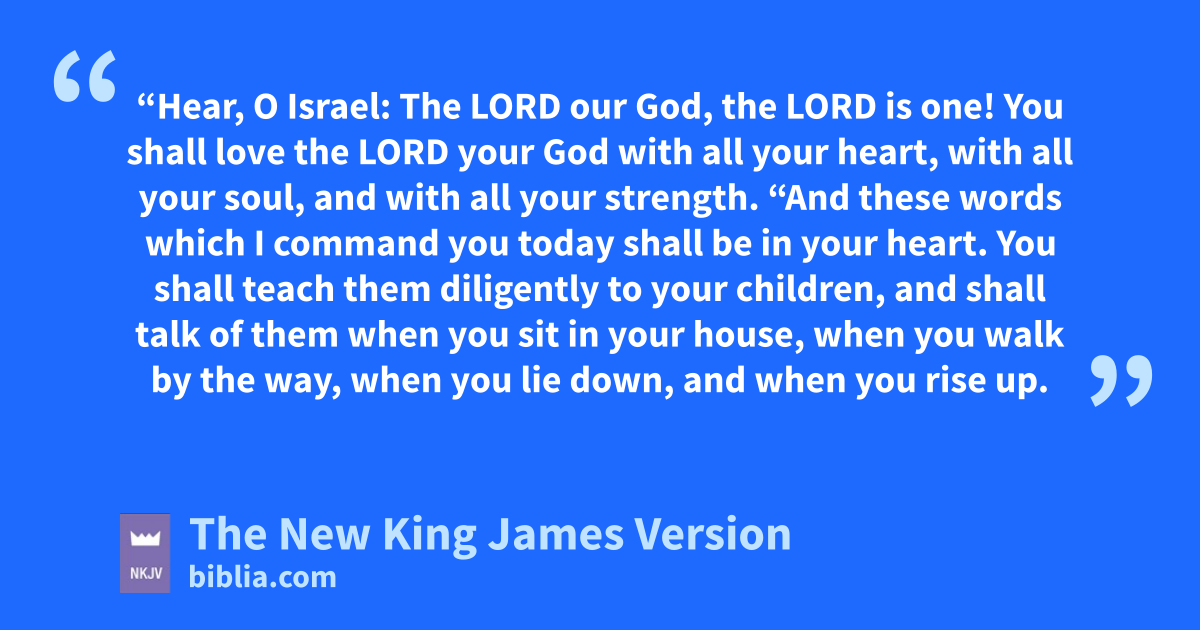 4 g“Hear, O Israel: 2The Lord our God, the Lord is one! 5 hYou shall love the Lord your God with all your heart, iwith all your soul, and with all your strength.