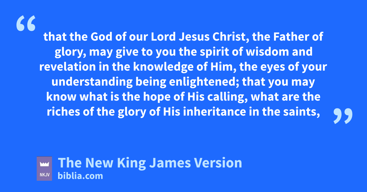 15 Therefore I also, aafter I heard of your faith in the Lord Jesus and your love for all the saints, 16 bdo not cease to give thanks for you, making mention of you in my prayers: 17 that cthe God of our Lord Jesus Christ, the Father of glory, dmay give to you the spirit of wisdom and revelation in the knowledge of Him, 18 ethe eyes of your 6understanding being enlightened; that you may know what is fthe hope of His calling, what are the riches of the glory of His inheritance in the saints, 19 and what is the exceeding greatness of His power toward us who believe, gaccording to the working of His mighty power 20 which He worked in Christ when hHe raised Him from the dead and iseated Him at His right hand in the heavenly places, 21 jfar above all kprincipality 7and 8power and 9might and dominion, and every name that is named, not only in this age but also in that which is to come.