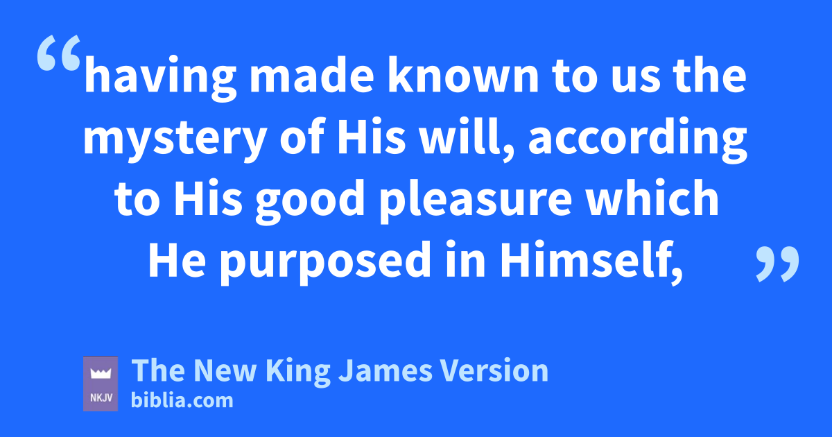 7 jIn Him we have redemption through His blood, the forgiveness of sins, according to kthe riches of His grace 8 which He made to abound toward us in all wisdom and 2prudence, 9 lhaving made known to us the mystery of His will, according to His good pleasure mwhich He purposed in Himself, 10 that in the dispensation of nthe fullness of the times oHe might gather together in one pall things in Christ, 3both which are in heaven and which are on earth—in Him. 11 qIn Him also we have obtained an inheritance, being predestined according to rthe purpose of Him who works all things according to the counsel of His will, 12 sthat we twho first trusted in Christ should be to the praise of His glory.