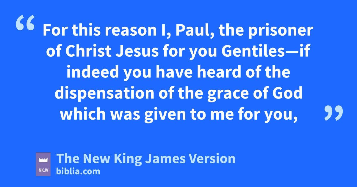 3 For this reason I, Paul, the prisoner of Christ Jesus for you Gentiles—2 if indeed you have heard of the 1dispensation of the grace of God awhich was given to me for you, 3 bhow that by revelation cHe made known to me the mystery (as I have briefly written already, 4 by which, when you read, you may understand my knowledge in the mystery of Christ), 5 which in other ages was not made known to the sons of men, as it has now been revealed by the Spirit to His holy apostles and prophets: 6 that the Gentiles dshould be fellow heirs, of the same body, and partakers of His promise in Christ through the gospel, 7 eof which I became a minister faccording to the gift of the grace of God given to me by gthe effective working of His power.