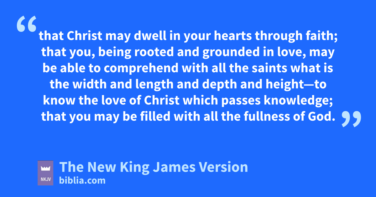 14 For this reason I bow my knees to the rFather 6of our Lord Jesus Christ, 15 from whom the whole family in heaven and earth is named, 16 that He would grant you, saccording to the riches of His glory, tto be strengthened with might through His Spirit in uthe inner man, 17 vthat Christ may dwell in your hearts through faith; that you, wbeing rooted and grounded in love, 18 xmay be able to comprehend with all the saints ywhat is the width and length and depth and height—19 to know the love of Christ which passes knowledge; that you may be filled zwith all the fullness of God.
