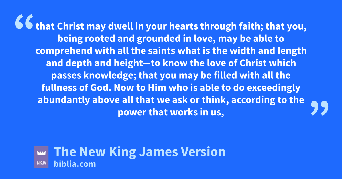 14 For this reason I bow my knees to the rFather 6of our Lord Jesus Christ, 15 from whom the whole family in heaven and earth is named, 16 that He would grant you, saccording to the riches of His glory, tto be strengthened with might through His Spirit in uthe inner man, 17 vthat Christ may dwell in your hearts through faith; that you, wbeing rooted and grounded in love, 18 xmay be able to comprehend with all the saints ywhat is the width and length and depth and height—19 to know the love of Christ which passes knowledge; that you may be filled zwith all the fullness of God.