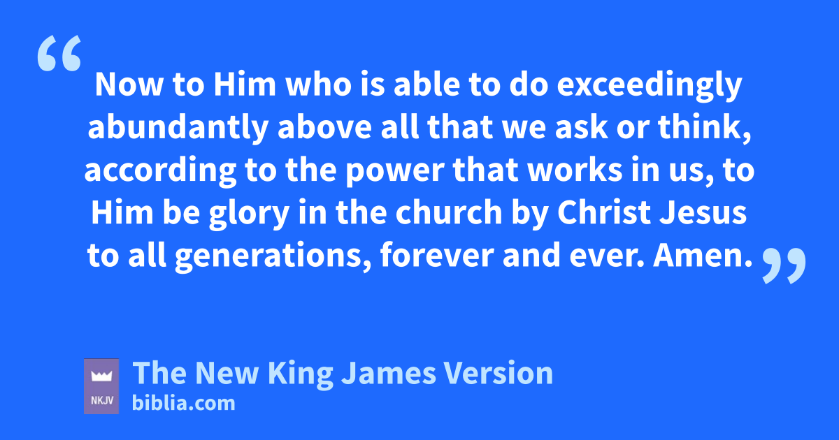 20 Now ato Him who is able to do exceedingly abundantly babove all that we ask or think, caccording to the power that works in us, 21 dto Him be glory in the church by Christ Jesus to all generations, forever and ever. Amen.
