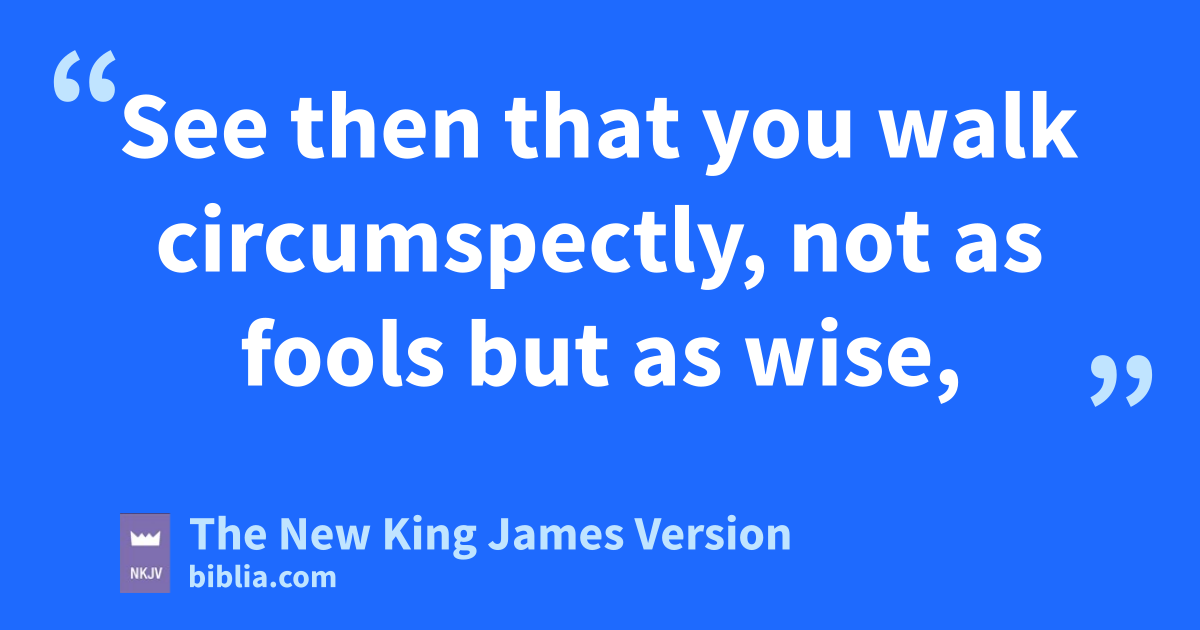 15 uSee then that you walk 5circumspectly, not as fools but as wise, 16 vredeeming the time, wbecause the days are evil.