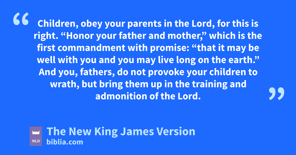 6 Children, aobey your parents in the Lord, for this is right. 2 b“Honor your father and mother,” which is the first commandment with promise: 3 “that it may be well with you and you may live long on the earth.”