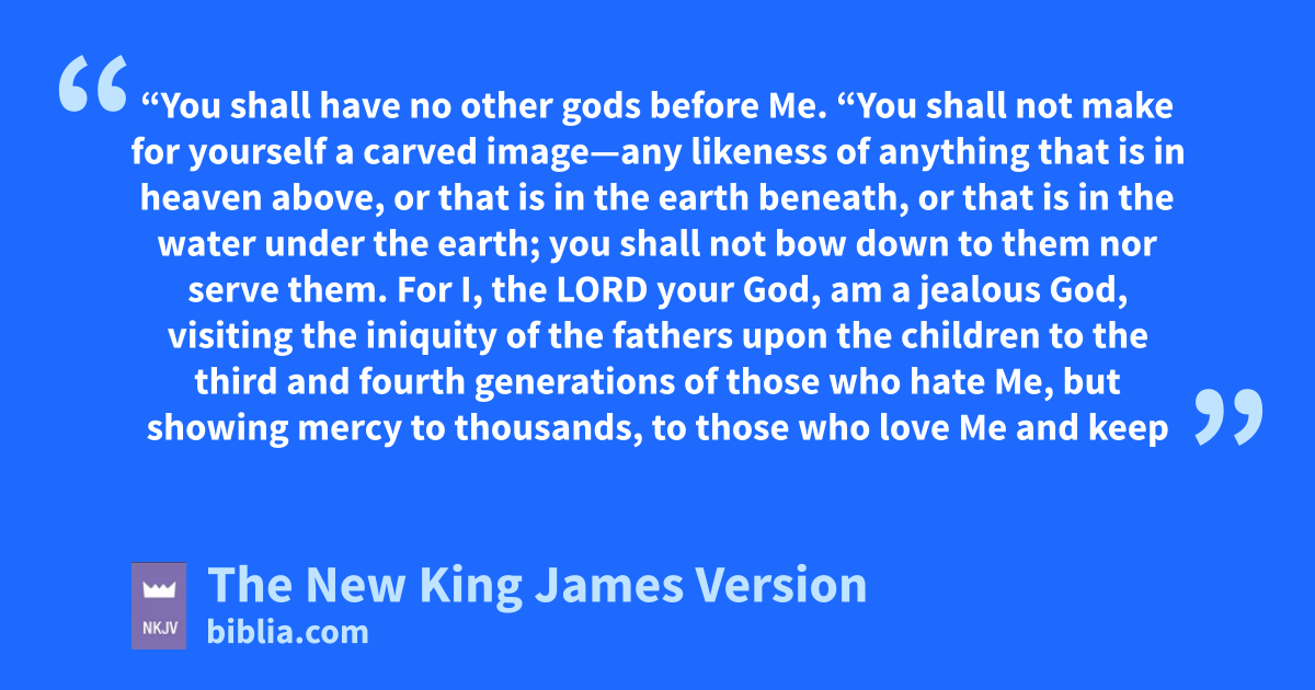 4 e“You shall not make for yourself a carved image—any likeness of anything that is in heaven above, or that is in the earth beneath, or that is in the water under the earth; 5 fyou shall not bow down to them nor 2serve them. gFor I, the Lord your God, am a jealous God, hvisiting 3the iniquity of the fathers upon the children to the third and fourth generations of those who hate Me, 6 but ishowing mercy to thousands, to those who love Me and keep My commandments.