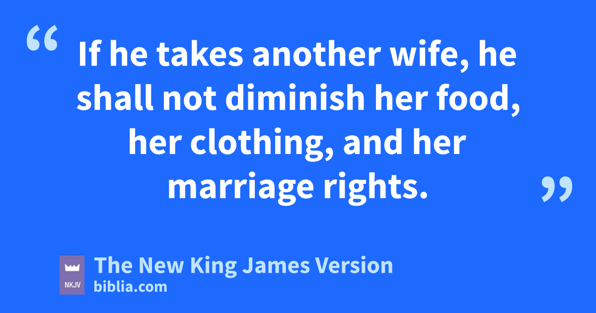7 “And if a man esells his daughter to be a female slave, she shall not go out as the male slaves do. 8 If she 2does not please her master, who has betrothed her to himself, then he shall let her be redeemed. He shall have no right to sell her to a foreign people, since he has dealt deceitfully with her. 9 And if he has betrothed her to his son, he shall deal with her according to the custom of daughters. 10 If he takes another wife, he shall not diminish her food, her clothing, fand her marriage rights. 11 And if he does not do these three for her, then she shall go out free, without paying money.