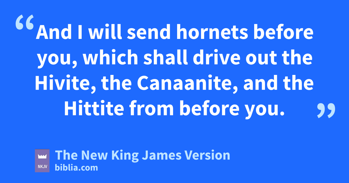 27 “I will send qMy fear before you, I will rcause confusion among all the people to whom you come, and will make all your enemies turn their backs to you. 28 And sI will send hornets before you, which shall drive out the Hivite, the Canaanite, and the Hittite from before you. 29 tI will not drive them out from before you in one year, lest the land become desolate and the beasts of the field become too numerous for you. 30 Little by little I will drive them out from before you, until you have increased, and you inherit the land. 31 And uI will set your 6bounds from the Red Sea to the sea, Philistia, and from the desert to the 7River. For I will vdeliver the inhabitants of the land into your hand, and you shall drive them out before you. 32 wYou shall make no 8covenant with them, nor with their gods. 33 They shall not dwell in your land, lest they make you sin against Me. For if you serve their gods, xit will surely be a snare to you.”
