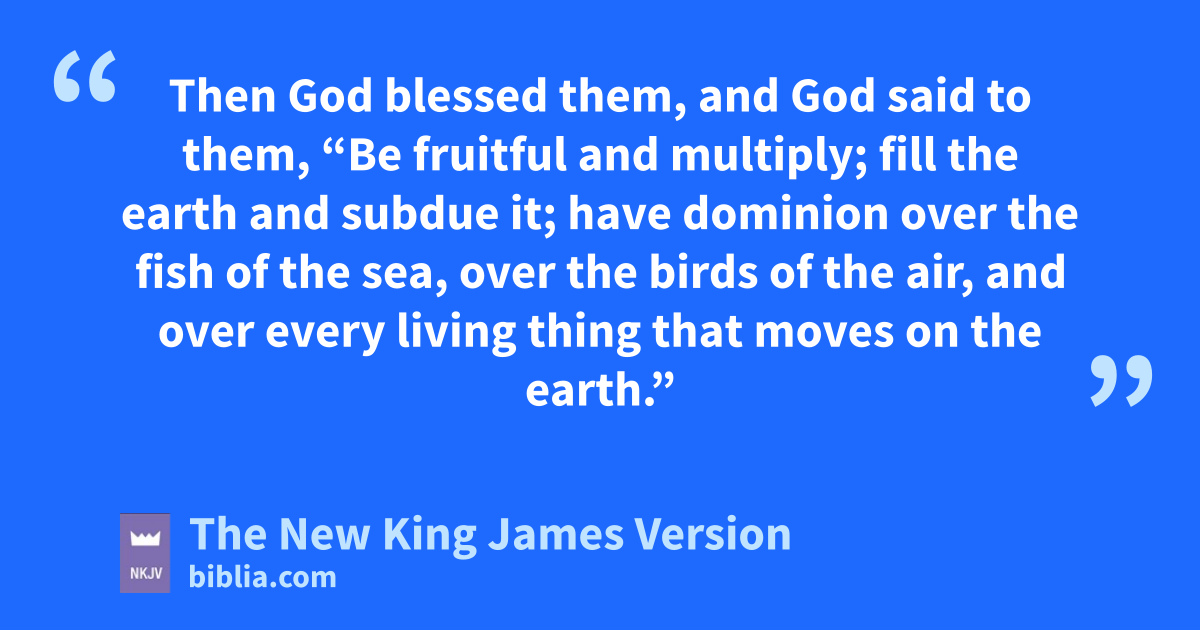 26 Then God said, y“Let Us make man in Our image, according to Our likeness; zlet them have dominion over the fish of the sea, over the birds of the air, and over the cattle, over 7all the earth and over every creeping thing that creeps on the earth.” 27 So God created man ain His own image; in the image of God He created him; bmale and female He created them. 28 Then God blessed them, and God said to them, c“Be fruitful and multiply; fill the earth and dsubdue it; have dominion over the fish of the sea, over the birds of the air, and over every living thing that 8moves on the earth.”
