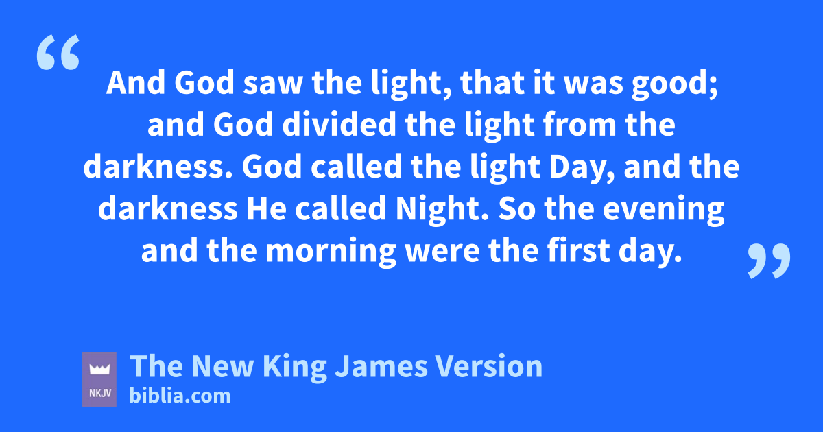 3 eThen God said, f“Let there be glight”; and there was light. 4 And God saw the light, that it was good; and God divided the light from the darkness. 5 God called the light Day, and the hdarkness He called Night. 2So the evening and the morning were the first day.