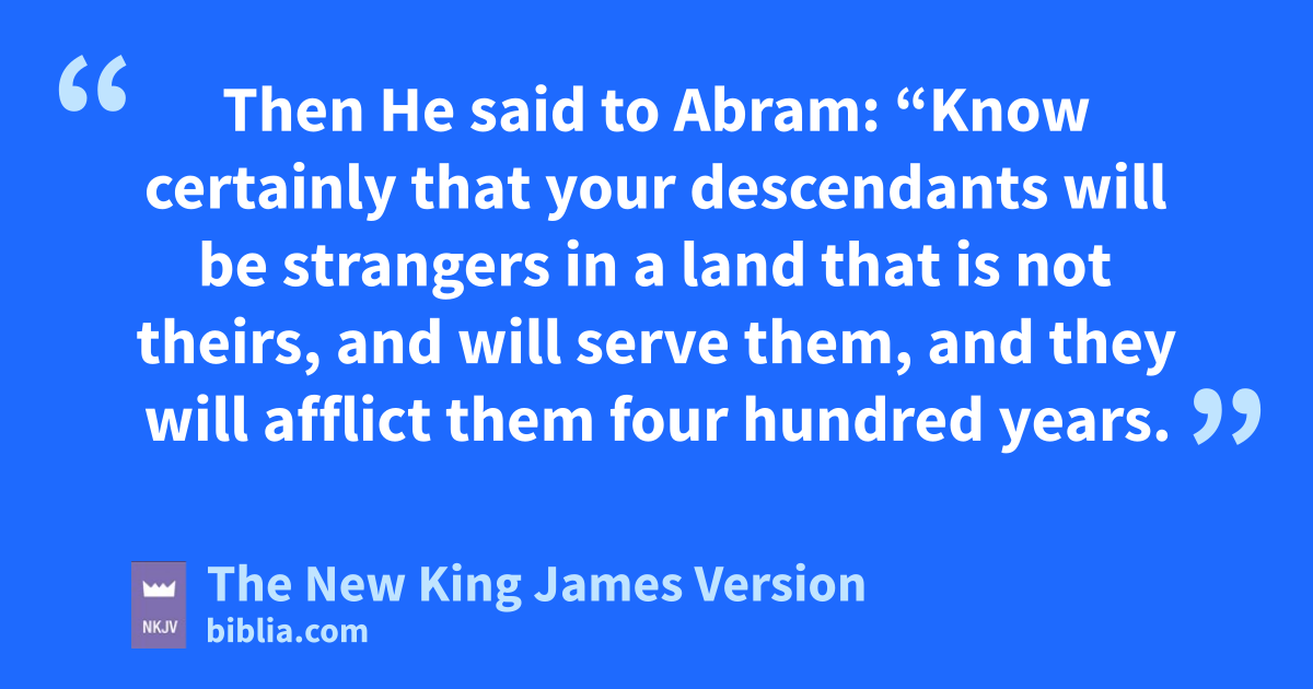 12 Now when the sun was going down, ua deep sleep fell upon Abram; and behold, horror and great darkness fell upon him. 13 Then He said to Abram: “Know certainly vthat your descendants will be strangers in a land that is not theirs, and will serve them, and wthey will afflict them four hundred years. 14 And also the nation whom they serve xI will judge; afterward ythey shall come out with great possessions. 15 Now as for you, zyou shall 4go ato your fathers in peace; byou shall be buried at a good old age. 16 But cin the fourth generation they shall return here, for the iniquity dof the Amorites eis not yet complete.”