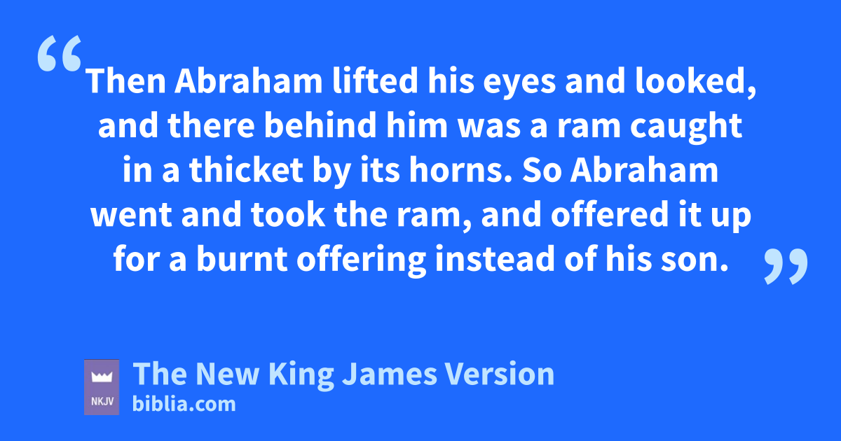 13 Then Abraham lifted his eyes and looked, and there behind him was a ram caught in a thicket by its horns. So Abraham went and took the ram, and offered it up for a burnt offering instead of his son. 14 And Abraham called the name of the place, 3The-Lord-Will-Provide; as it is said to this day, “In the Mount of the Lord it shall be provided.”