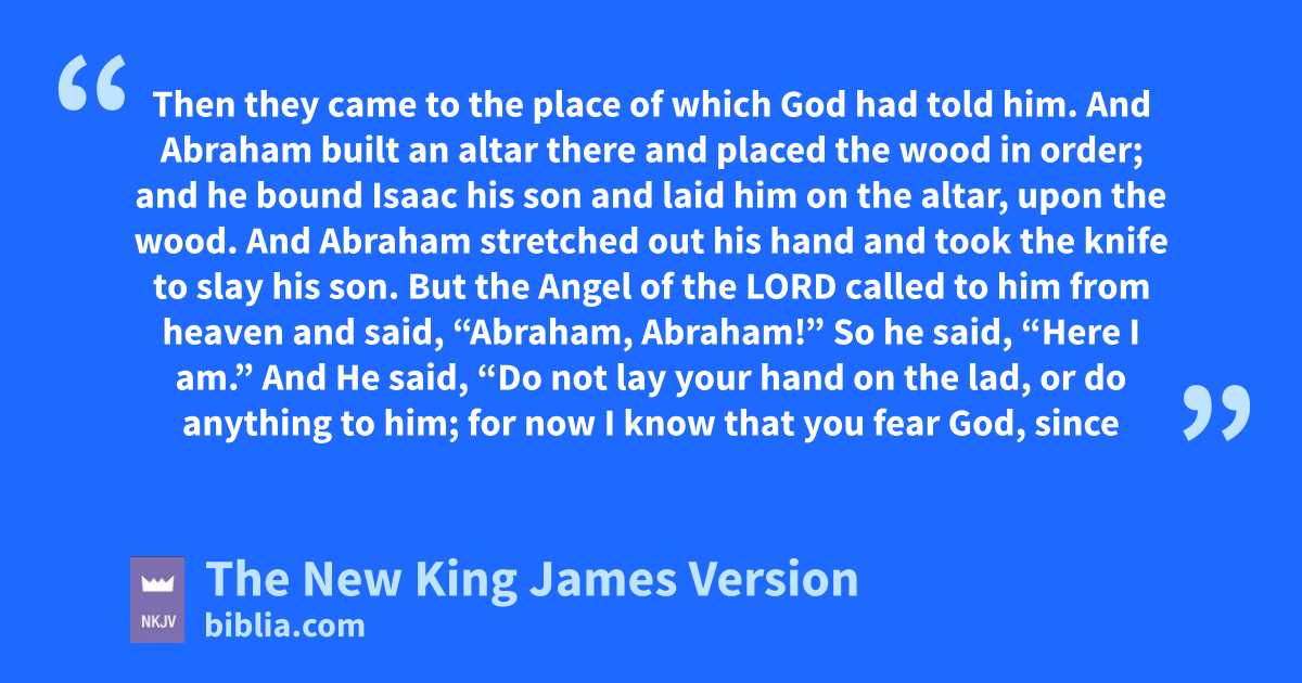 9 Then they came to the place of which God had told him. And Abraham built an altar there and placed the wood in order; and he bound Isaac his son and jlaid him on the altar, upon the wood. 10 And Abraham stretched out his hand and took the knife to slay his son.