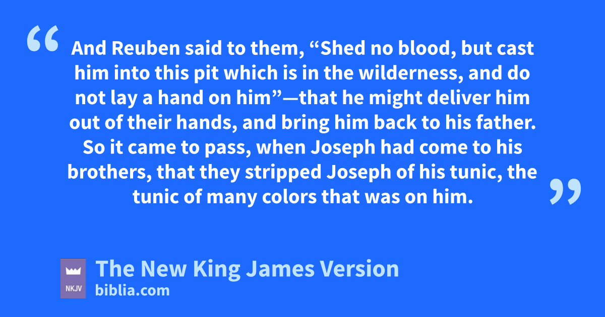 21 But qReuben heard it, and he delivered him out of their hands, and said, “Let us not kill him.” 22 And Reuben said to them, “Shed no blood, but cast him into this pit which is in the wilderness, and do not lay a hand on him”—that he might deliver him out of their hands, and bring him back to his father.