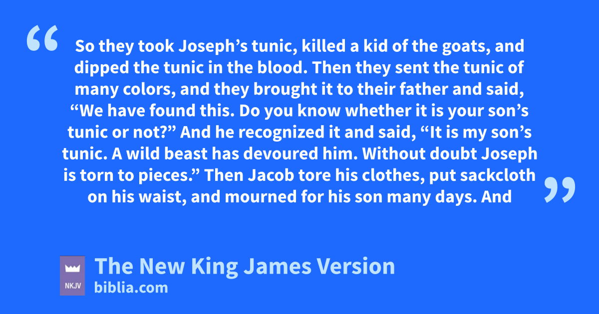 31 So they took eJoseph’s tunic, killed a kid of the goats, and dipped the tunic in the blood. 32 Then they sent the tunic of many colors, and they brought it to their father and said, “We have found this. Do you know whether it is your son’s tunic or not?”