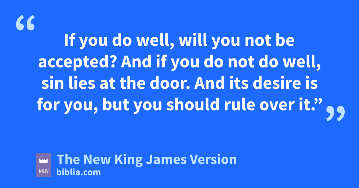 6 So the Lord said to Cain, “Why are you angry? And why has your countenance fallen? 7 If you do well, will you not be accepted? And if you do not do well, sin lies at the door. And its desire is 4for you, but you should rule over it.”