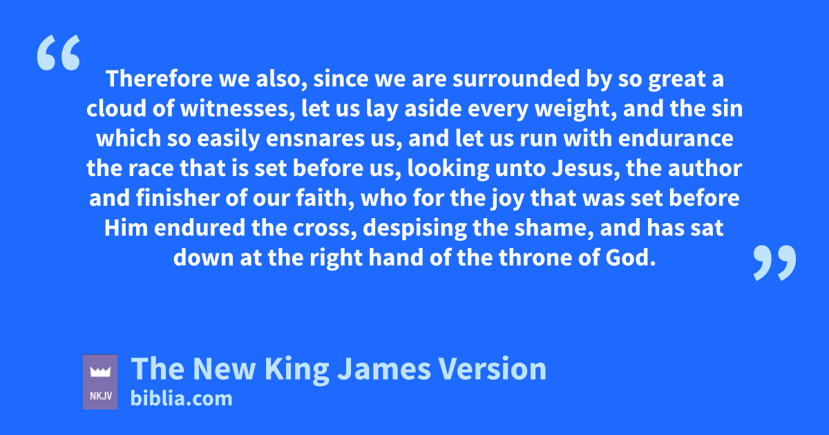 12 Therefore we also, since we are surrounded by so great a cloud of witnesses, alet us lay aside every weight, and the sin which so easily ensnares us, and blet us run cwith endurance the race that is set before us, 2 looking unto Jesus, the 1author and 2finisher of our faith, dwho for the joy that was set before Him eendured the cross, despising the shame, and fhas sat down at the right hand of the throne of God.
