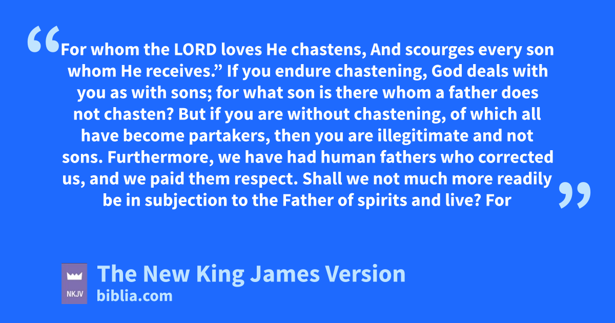 7 lIf 4you endure chastening, God deals with you as with sons; for what mson is there whom a father does not chasten? 8 But if you are without chastening, nof which all have become partakers, then you are illegitimate and not sons. 9 Furthermore, we have had human fathers who corrected us, and we paid them respect. Shall we not much more readily be in subjection to othe Father of spirits and live? 10 For they indeed for a few days chastened us as seemed best to them, but He for our profit, pthat we may be partakers of His holiness. 11 Now no 5chastening seems to be joyful for the present, but painful; nevertheless, afterward it yields qthe peaceable fruit of righteousness to those who have been trained by it.