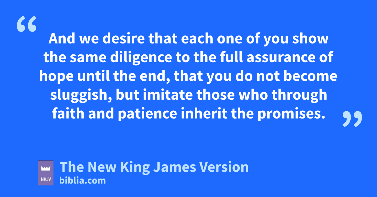 9 But, beloved, we are confident of better things concerning you, yes, things that accompany salvation, though we speak in this manner. 10 For lGod is not unjust to forget myour work and 4labor of love which you have shown toward His name, in that you have nministered to the saints, and do minister. 11 And we desire that each one of you show the same diligence oto the full assurance of hope until the end, 12 that you do not become 5sluggish, but imitate those who through faith and patience pinherit the promises.
