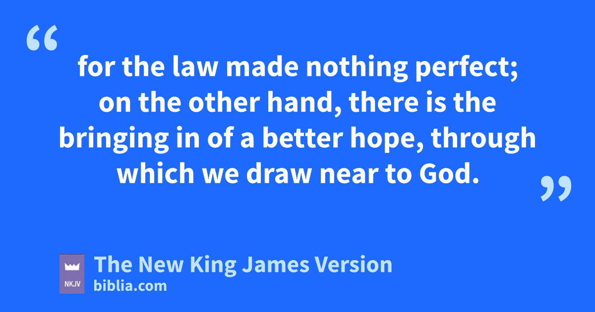 18 For on the one hand there is an annulling of the former commandment because of jits weakness and unprofitableness, 19 for kthe law made nothing 5perfect; on the other hand, there is the bringing in of la better hope, through which mwe draw near to God.
