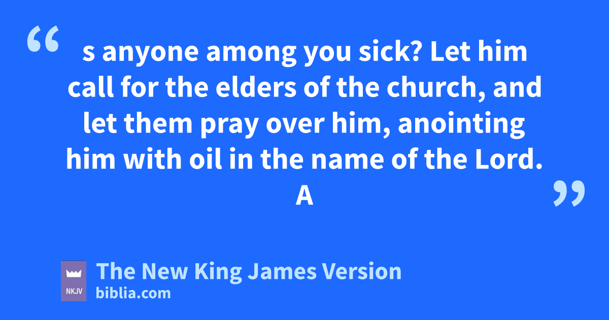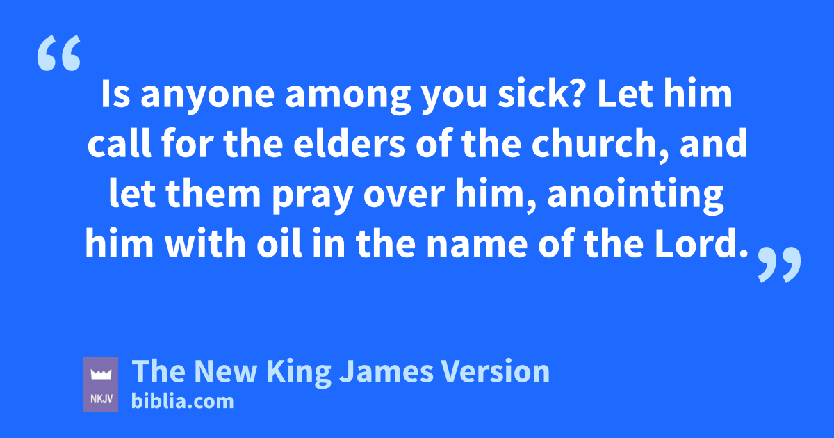 13 Is anyone among you suffering? Let him opray. Is anyone cheerful? pLet him sing psalms. 14 Is anyone among you sick? Let him call for the elders of the church, and let them pray over him, qanointing him with oil in the name of the Lord. 15 And the prayer of faith will save the sick, and the Lord will raise him up. rAnd if he has committed sins, he will be forgiven. 16 1Confess your trespasses to one another, and pray for one another, that you may be healed. sThe effective, 2fervent prayer of a righteous man avails much. 17 Elijah was a man twith a nature like ours, and uhe prayed earnestly that it would not rain; and it did not rain on the land for three years and six months. 18 And he prayed vagain, and the heaven gave rain, and the earth produced its fruit.