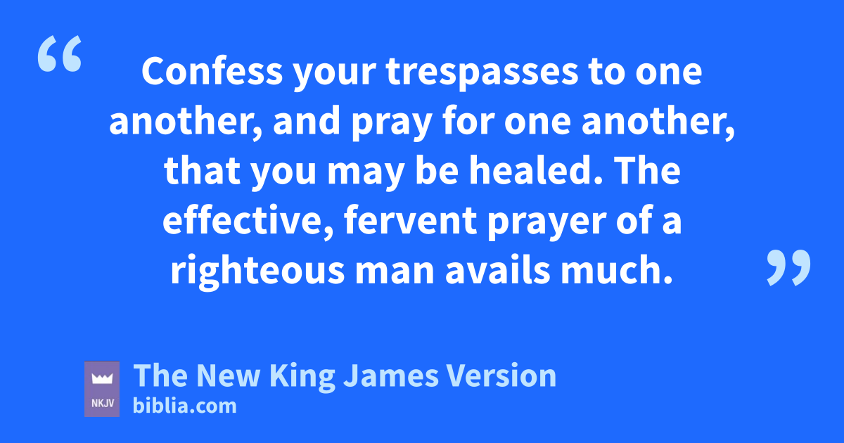 13 Is anyone among you suffering? Let him opray. Is anyone cheerful? pLet him sing psalms. 14 Is anyone among you sick? Let him call for the elders of the church, and let them pray over him, qanointing him with oil in the name of the Lord. 15 And the prayer of faith will save the sick, and the Lord will raise him up. rAnd if he has committed sins, he will be forgiven. 16 1Confess your trespasses to one another, and pray for one another, that you may be healed. sThe effective, 2fervent prayer of a righteous man avails much. 17 Elijah was a man twith a nature like ours, and uhe prayed earnestly that it would not rain; and it did not rain on the land for three years and six months. 18 And he prayed vagain, and the heaven gave rain, and the earth produced its fruit.