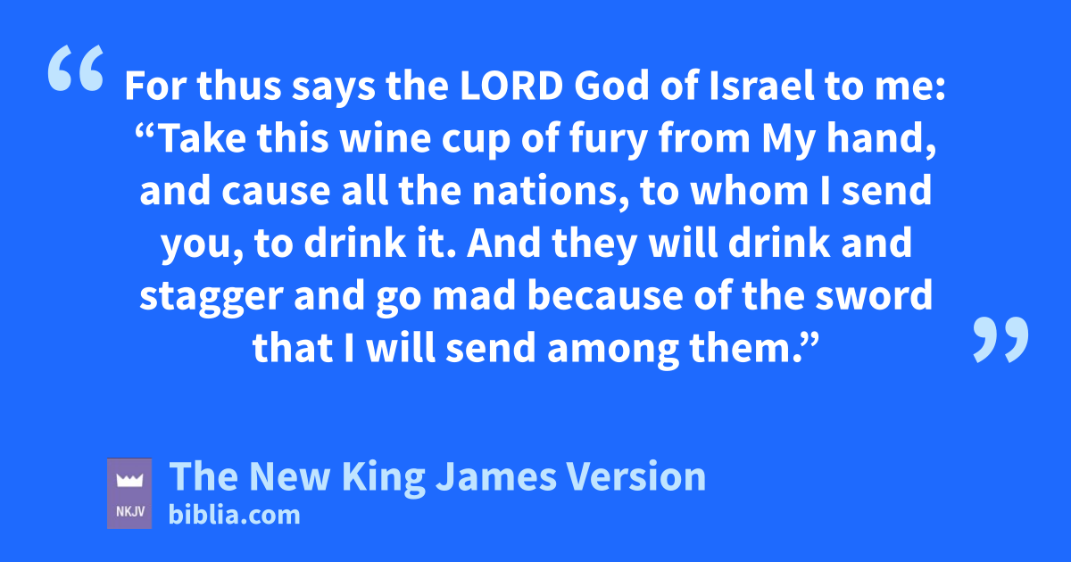 15 For thus says the Lord God of Israel to me: “Take this twine cup of 3fury from My hand, and cause all the nations, to whom I send you, to drink it. 16 And uthey will drink and stagger and go mad because of the sword that I will send among them.”