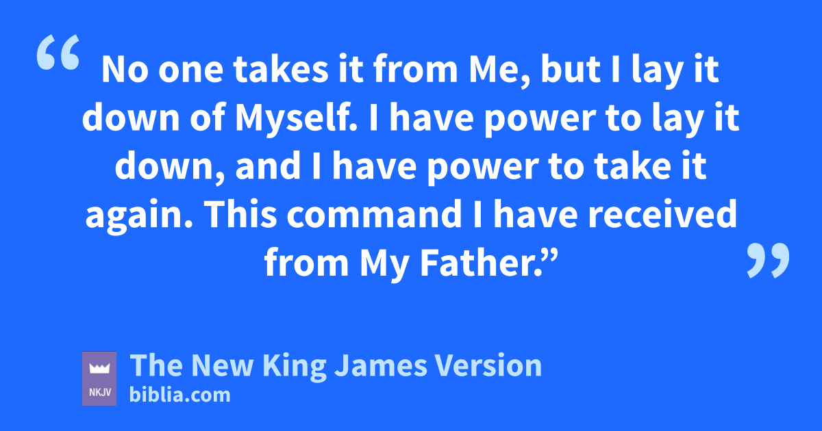 17 “Therefore My Father lloves Me, mbecause I lay down My life that I may take it again. 18 No one takes it from Me, but I lay it down of Myself. I nhave power to lay it down, and I have power to take it again. oThis command I have received from My Father.”
