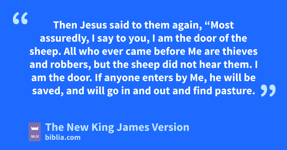 7 Then Jesus said to them again, “Most assuredly, I say to you, I am the door of the sheep. 8 All who ever came 1before Me are thieves and robbers, but the sheep did not hear them. 9 cI am the door. If anyone enters by Me, he will be saved, and will go in and out and find pasture. 10 The thief does not come except to steal, and to kill, and to destroy. I have come that they may have life, and that they may have it more abundantly.