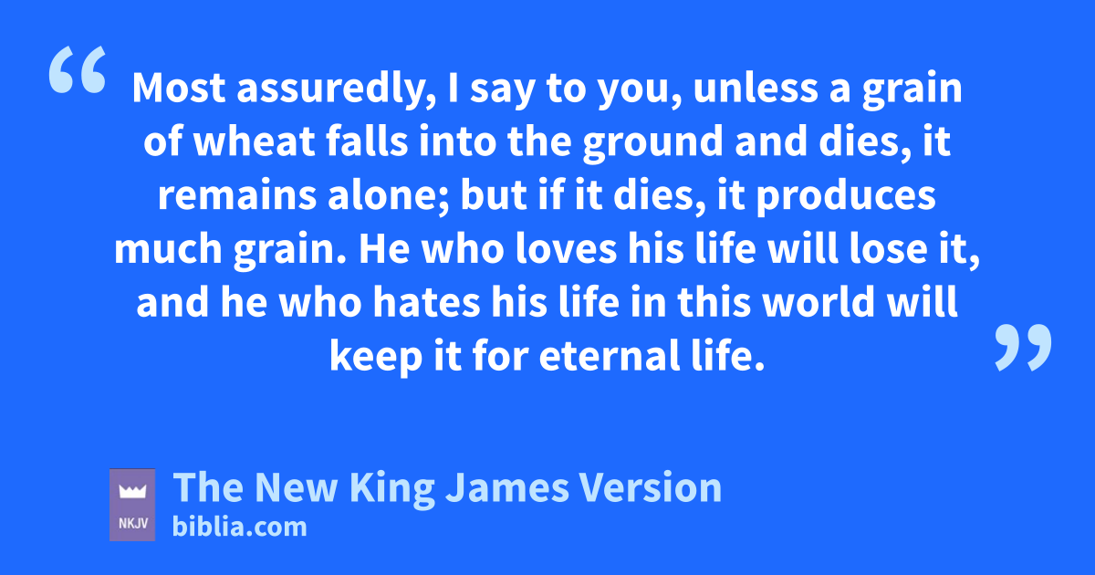23 But Jesus answered them, saying, w“The hour has come that the Son of Man should be glorified. 24 Most assuredly, I say to you, xunless a grain of wheat falls into the ground and dies, it remains alone; but if it dies, it produces much 4grain. 25 yHe who loves his life will lose it, and he who hates his life in this world will keep it for eternal life. 26 If anyone serves Me, let him zfollow Me; and awhere I am, there My servant will be also. If anyone serves Me, him My Father will honor.