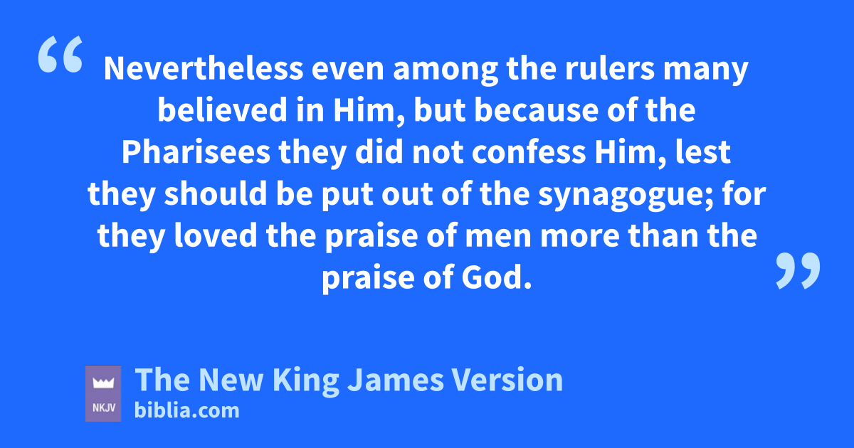 42 Nevertheless even among the rulers many believed in Him, but ubecause of the Pharisees they did not confess Him, lest they should be put out of the synagogue; 43 vfor they loved the praise of men more than the praise of God.