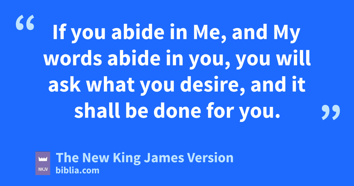 5 “I am the vine, you are the branches. He who abides in Me, and I in him, bears much efruit; for without Me you can do fnothing. 6 If anyone does not abide in Me, ghe is cast out as a branch and is withered; and they gather them and throw them into the fire, and they are burned. 7 If you abide in Me, and My words habide in you, iyou 2will ask what you desire, and it shall be done for you. 8 jBy this My Father is glorified, that you bear much fruit; kso you will be My disciples.